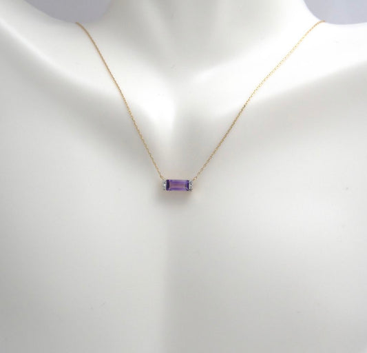 14K Yellow Gold Purple Amethyst and Natural Diamonds 16-18” Necklace