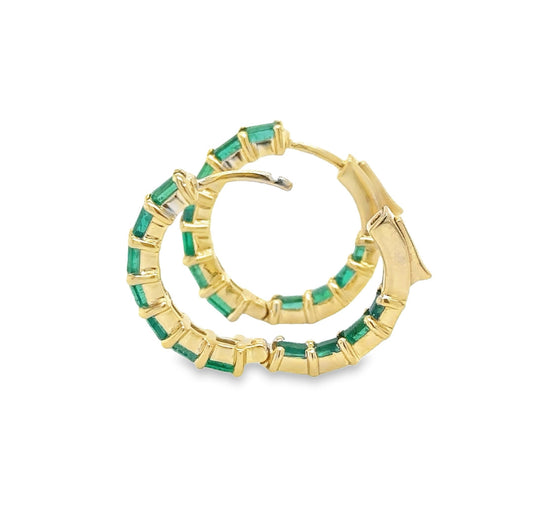 14K Yellow Gold Natural Blue Sapphire 10MM Hoops Earrings