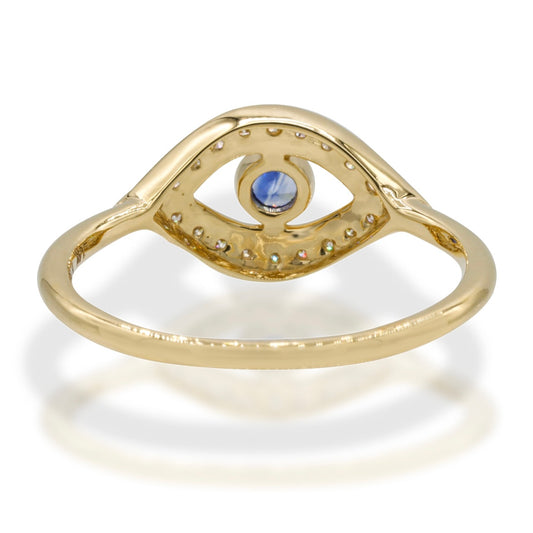 14K Yellow Gold Evil Eye Diamond and Blue Sapphire Ring