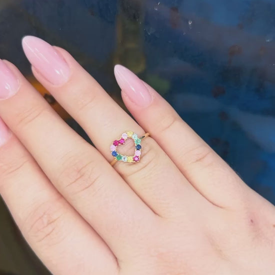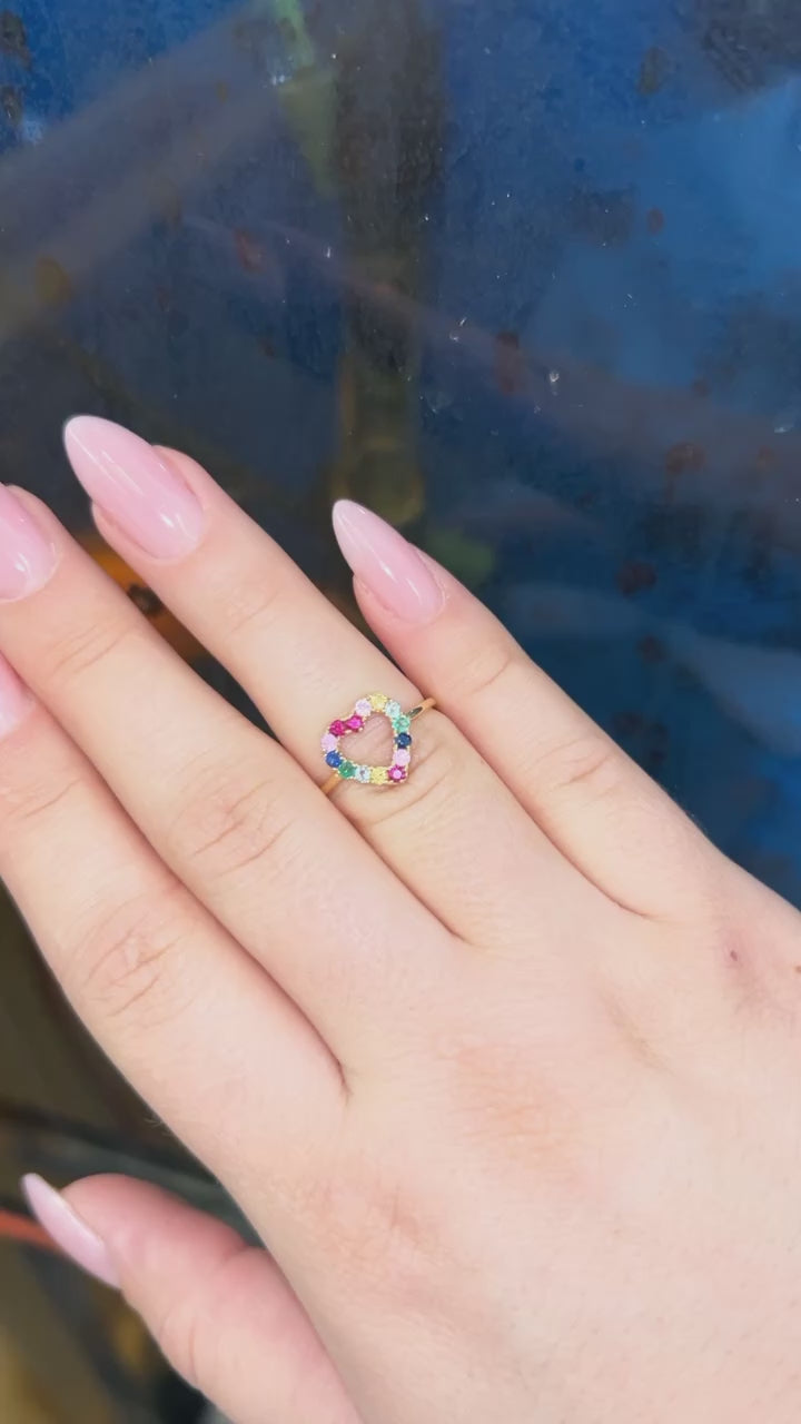 14K Yellow Gold Rainbow Natural Gem Stone Heart Ring